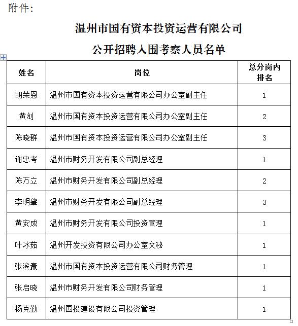 溫州市國有資本投資運營有限公司關(guān)于公開招聘筆試成績查詢及資格復(fù)審有關(guān)事項的公告